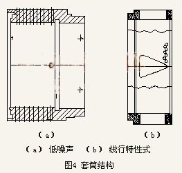 工業生產控制系統的多樣性決定了調節閥必須具備靈活的可調結構,軸流型調節閥要適應現代工業的發展也必須具備此特點。套筒是為適應高壓差,大口徑的管道需要而設計的一種流量節流零件。套筒閥因其獨特的導向穩定性和易于實現高精度調節被廣泛使用,套筒閥的發明使原有閥門的流通能力提高了20%。套筒是為解決單座閥流通能力過低,不平衡力大而設計的一種結構,使用較廣泛。軸流型調節閥吸取了它的優點,延用了此結構。套筒(圖4)分為低噪聲式、線性特性式、等百分比式和低壓降比式等。
