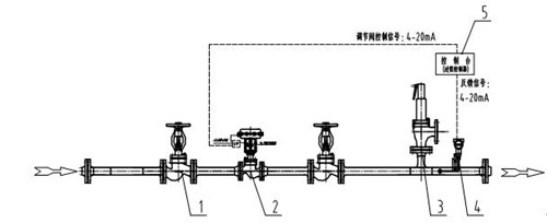 1、截止閥 2、氣動調節閥(附帶定位器) 3、安全閥 4、 壓力變送器 5、控制臺(過程控制器)