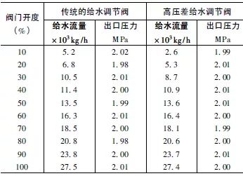 表1 高壓差單座密封給水調節閥與傳統的給水調節閥性能比較